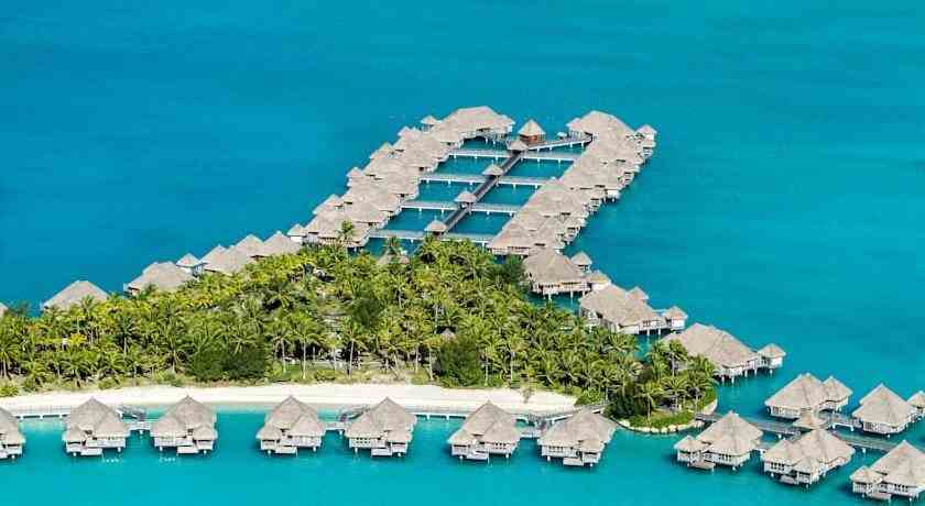 The St Regis Bora Bora Resort is a 10-minute drive from Mont Otemanu and Mont Pahia. It is a 15-minute boat transfer from Bora Bora Airport. Vaitape Village can be reached via a 20-minute boat and car journey.